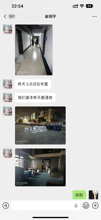 崔翔宇向记者讲述团队连日来通宵提供各项保障设施 受访者 供图