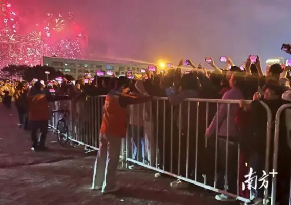 ▲焰火晚会志愿者用耐心织就秩序网