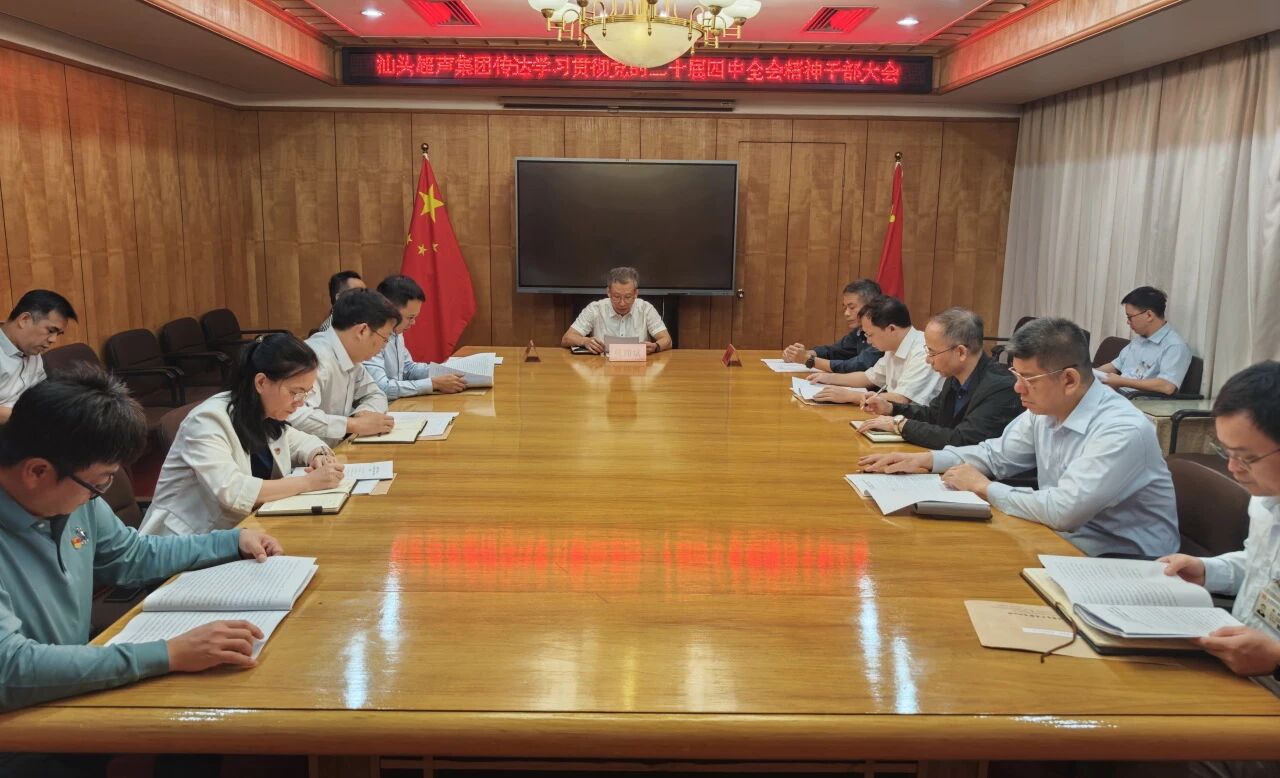 2025年11月4日上午,超声集团党委在集团办公大楼三楼大会议室召开会议,传达学习贯彻习近平总书记在党的二十届四中全会上的重要讲话精神和全会精神,以及全省、全市干部大会精神,全面贯彻落实中央、省市以及市国资委有关会议的部署要求,动员部署超声集团学习宣传贯彻工作。集团党委书记、董事长莫翊斌同志主持会议并讲话,集团公司领导班子成员,集团公司中层以上干部、公司各党支部书记、所属二级企业主要负责同志参加了会议。