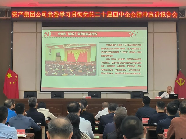 为深入学习贯彻党的二十届四中全会精神,引导国有企业党员干部深刻领会党的二十届四中全会精神的核心要义和实践要求,切实把思想和行动统一到党中央决策部署上来,12月3日下午,汕头市资产管理集团有限公司(以下简称资产集团)党委举办学习贯彻党的二十届四中全会精神宣讲报告会。