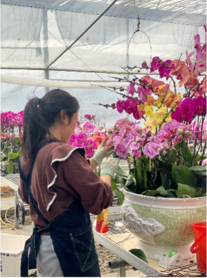 为精准契合新春消费需求,科农公司立足蝴蝶兰生产培育优势,提前布局年宵花销售工作。一方面积极对接大型企业等优质客户,深度挖掘客户个性需求,聘请专业花艺师,围绕新春吉祥寓意,打造定制化蝴蝶兰组盆及艺术型盆栽,让每一盆蝴蝶兰既兼具高端观赏价值,又承载着新春纳福的美好期许;另一方面,在产品配套上精益求精,为蝴蝶兰量身定制精致包装,搭配专属祝福卡片,更贴心开通“专属配送通道”,组建专业配送团队,全力保障配送效率与服务质量。