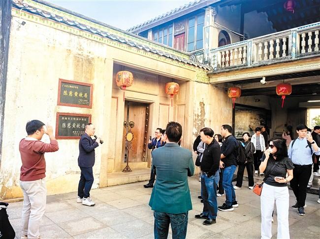 (在陈慈黉故居内,陈氏后人循着先辈足迹,聆听家族创业故事。)