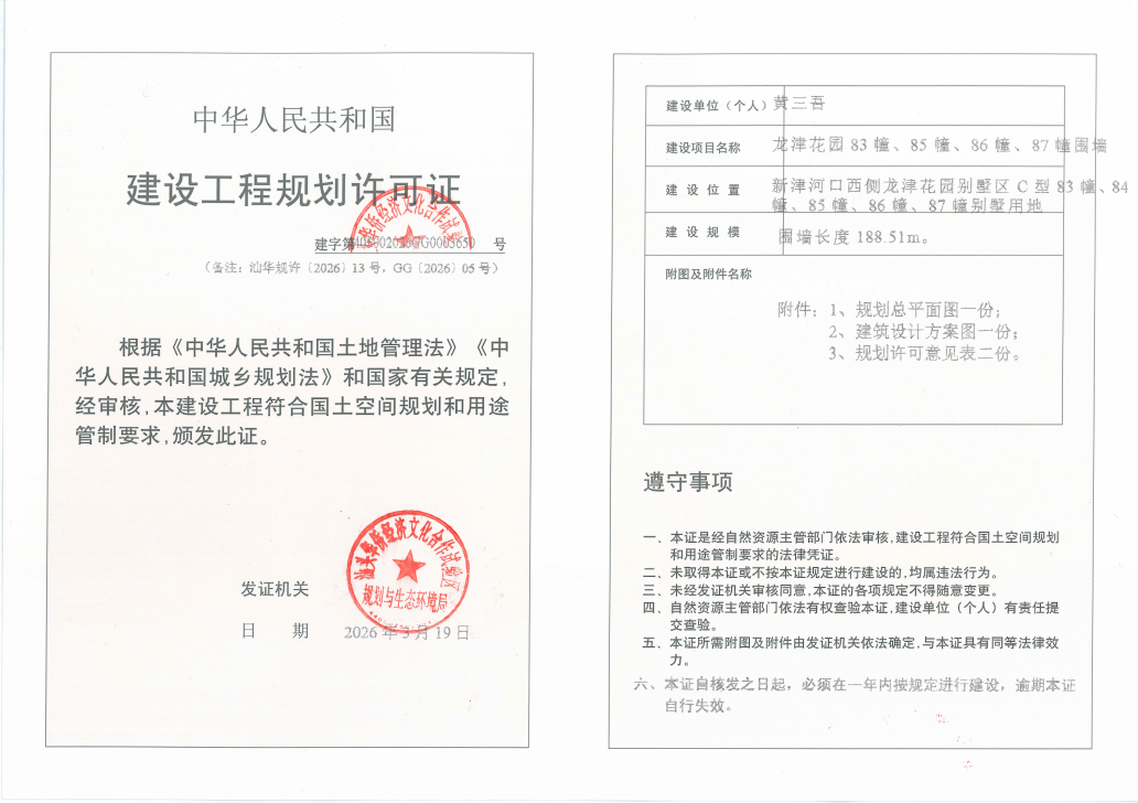 根据《中华人民共和国城乡规划法》第四十条、四十三条规定,经审核,本建设工程符合城乡规划要求,颁发此证: