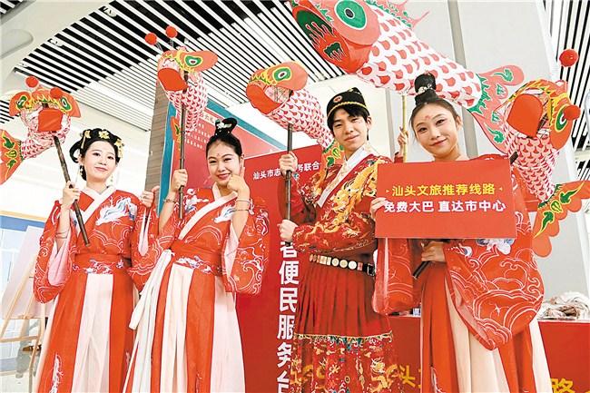 新年第一天,汕头小公园历史文化街区张灯结彩,锣鼓喧天,人山人海。一场别开生面的非遗民俗文化巡演为来汕享暖冬的游客带来无限欢乐。八方游客一次性感受了金平英歌、汕头龙舞、湖头醒狮、节令鼓、李家教拳和大刀的精彩表演,让游客们沉浸式感受潮汕传统民俗文化。元旦期间,小公园还上演了英歌舞巡游,让近距离看英歌舞的游客大呼过瘾。广州游客黄女士感叹:“汕头的民俗文化传承得真好,英歌舞太精彩了!现在高铁真的很方便,过年我们还来。” 看,这边的游客摸摸狮子头,迎接新年的“好彩头”,另一边的演出间隙,英歌舞队员们和游客们开心合影。龙眼南路美食街、镇邦路美食街则持续爆满,牛肉火锅、肠粉、生腌……成为众多食客奔赴一座城的理由。 在汕头高铁站出站口,抵达汕头的游客收到了新年的第一份惊喜。“粤享暖冬 至汕好礼”文旅消费季宣推活动向莅汕游客宣传展示汕头文旅资源、婚旅线路、特色美食等,并呈上特色文艺表演、派送文旅好礼等,用热情与诚意迎接每一位抵达汕头的游客。“文旅大礼包”这份精心准备的暖心礼物,受到广大旅客一致点赞。 (记者 郭丹 摄影 袁笙 柯晓)