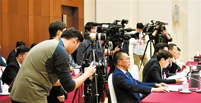 (媒体聚焦汕头代表团开放团组会议。 记者 方淦明 摄)