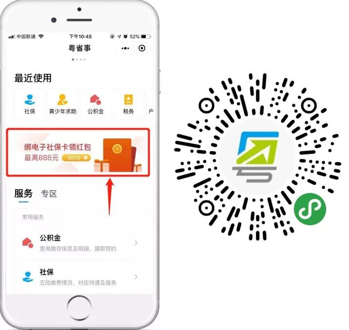 你也可以长按识别下方葵花码,直接进入活动页面,或者登陆“粤省事”微信小程序,在首页点击下方图示位置进入活动。