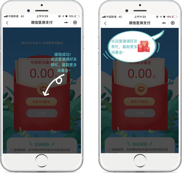3.用户在活动时间内获得的消暑金需点击“立即领取”,方可将消暑金转入到“微信零钱钱包”,若超过活动时间没有点击领取消暑金将会做回收处理。