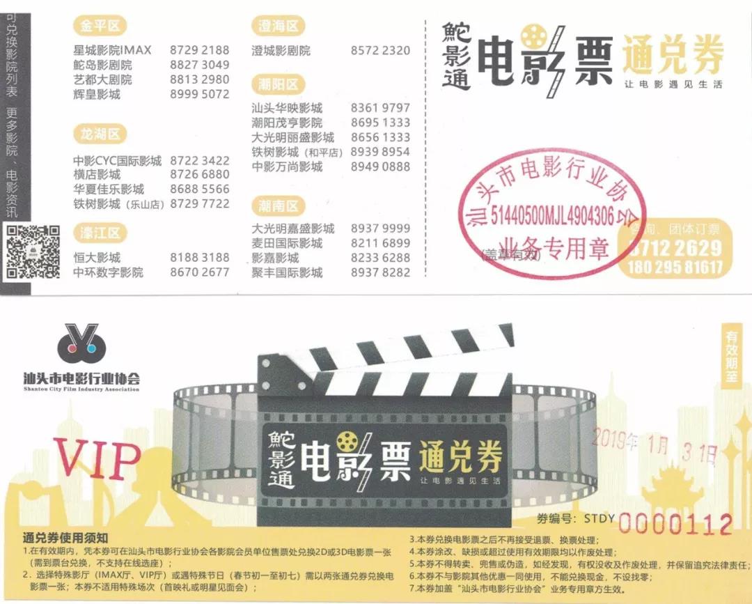 近日,为满足人们日益增长的文化需要,进一步方便广大市民,汕头市电影行业协会特别推出了“鮀影通”电影票通兑券,并举行“鮀影通·电影票通兑券”签约仪式。今后,市民持此券即可在全市范围内二十多家电影院兑换任何场次、不限时段、不限影片的电影票,是机关团体、企事业单位员工福利、商务馈赠、积分兑换以及个人观影自用的最佳选择。
