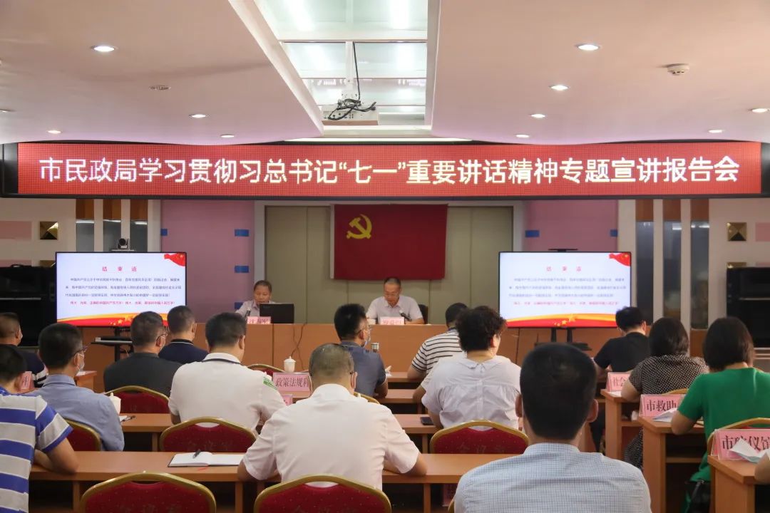 9月2日下午,市民政局召开学习贯彻习近平总书记“七一”重要讲话精神专题宣讲报告会,邀请市委宣讲团成员、汕头大学马克思主义学院党总支书记、教授沈海军作专题宣讲。市民政局党组书记、局长罗舜煜同志主持会议。