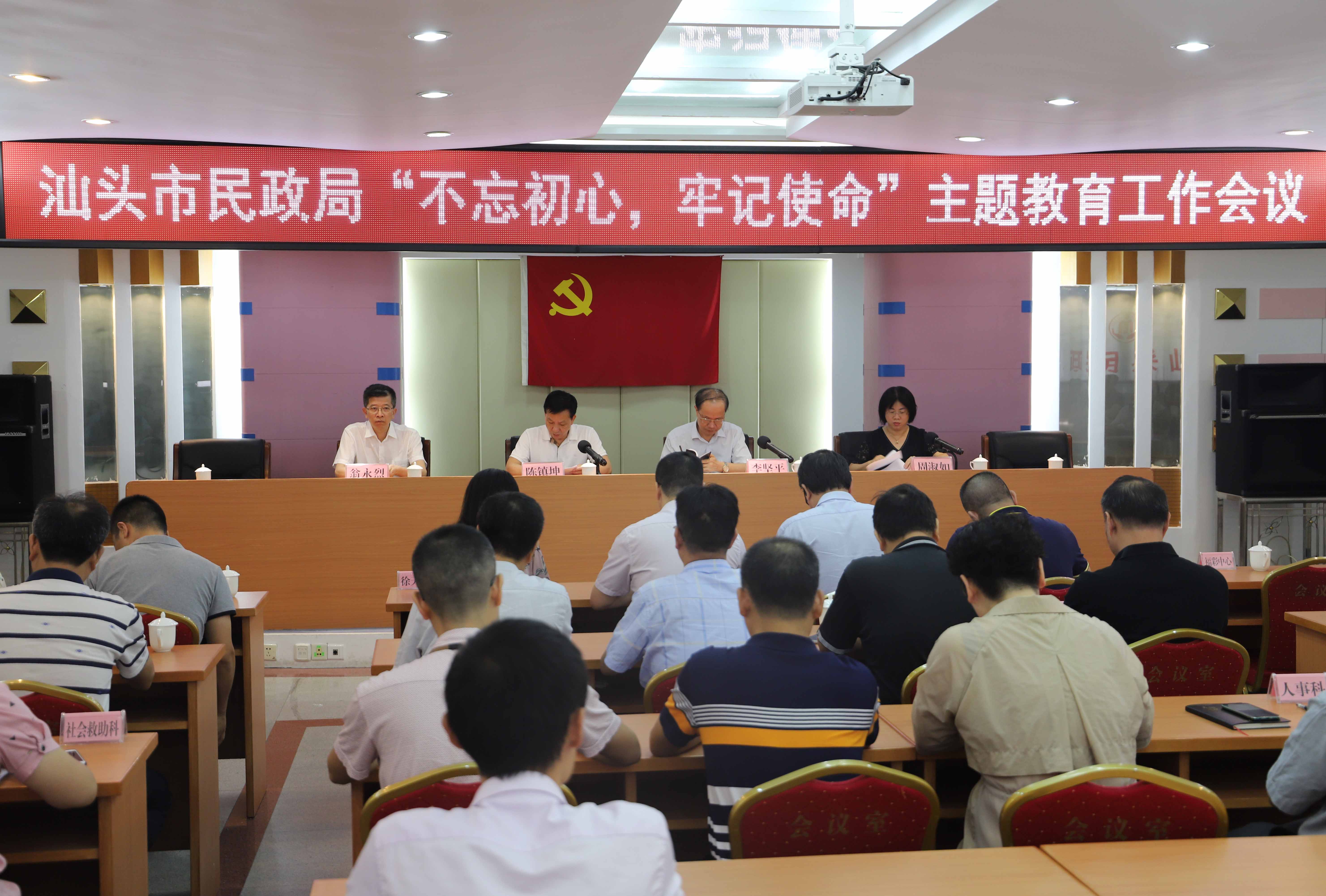 9月12日,汕头市民政局召开“不忘初心、牢记使命”主题教育工作会议。会议深入学习贯彻习近平新时代中国特色社会主义思想,认真贯彻落实中央省、市“不忘初心、牢记使命”主题教育第二批部署会议精神,对民政局开展主题教育进行动员部署。局党组成员、调研员、机关全体党员,直属单位党支部委员、办公室主任参加会议。市委主题教育第九指导组组长李坚平同志、副组长翁永烈同志以及4位组员到会指导。会议由市民政局党组成员、副局长周淑如同志主持。