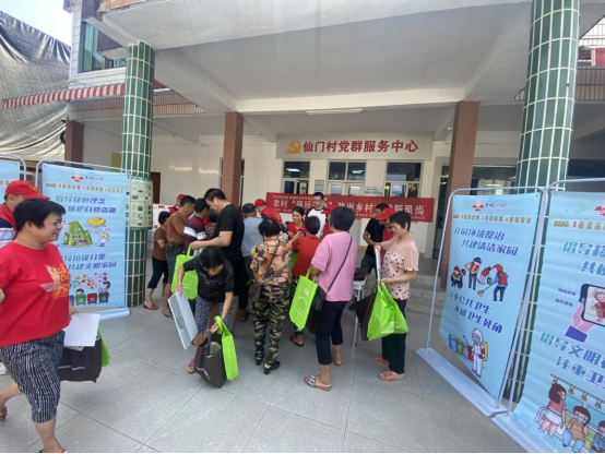 活动中,志愿者们在澄海区溪南镇仙门村新时代文明实践站前,悬挂横幅、设置移风易俗宣传展板、设立咨询台,现场为村民发放“农村厕所明白卡”及种子、化肥等农资。向广大村民宣传大力推进厕所革命的重要性,倡导村民改善人居环境,携起手来,从现在做起、从小事做起、从家庭做起、从自己做起,齐心协力建设洁净、文明、有序、和谐的美丽乡村。
