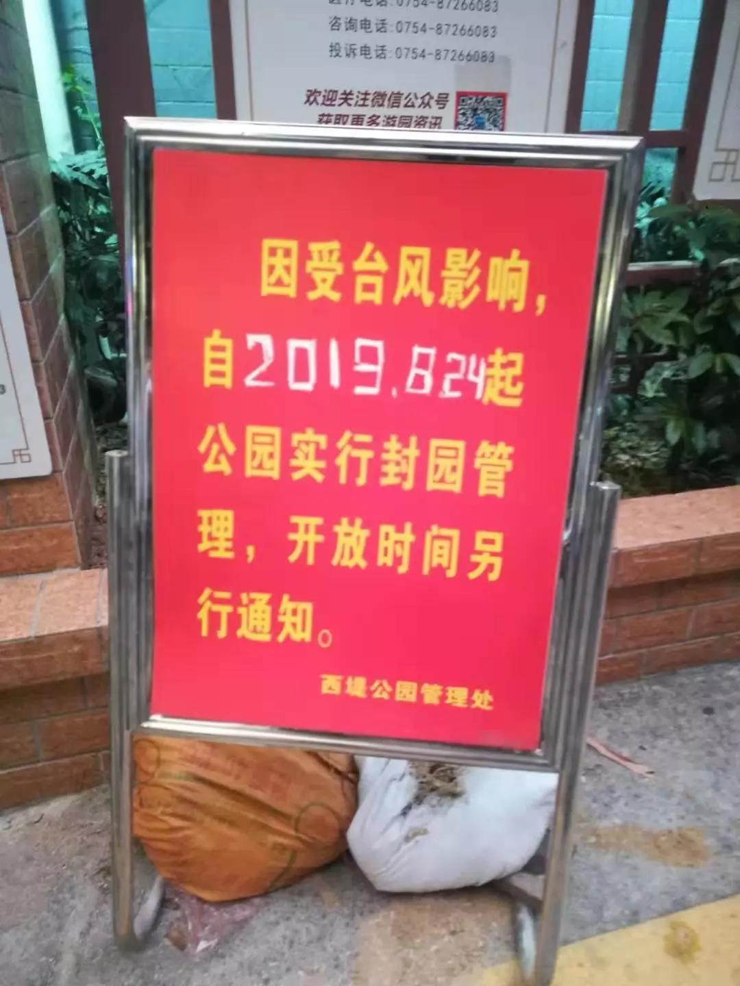 受台风“白鹿”影响,汕头市气象台于8月24日18时45分将台风黄色预警信号升级台风橙色预警信号。为全力做好防御台风“白鹿”,保障市民游客游园安全,市园林处于8月24日(星期六)19时起对汕头市中心城区的中山公园 、儿童公园 、湿地公园、金砂公园 、石炮台公园 、西堤公园、北郊公园 及鮀岛苗圃公园实行临时闭园管理,不便之处敬请见谅。