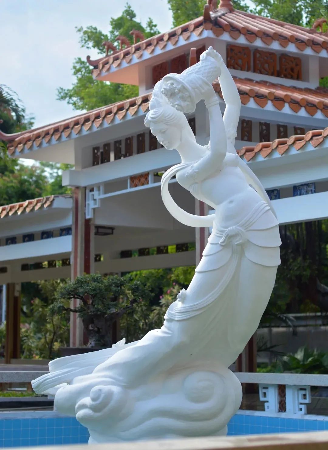 地方特色的引入也是馆花宫建筑装饰艺术风格之一,馆花宫水体在平面的处理上,既有几何形式,也有较蜿蜒曲折,聚散有致的自然形水池,且池岸形式较多:有规则式的,有叠石的,也有天然的土岸。