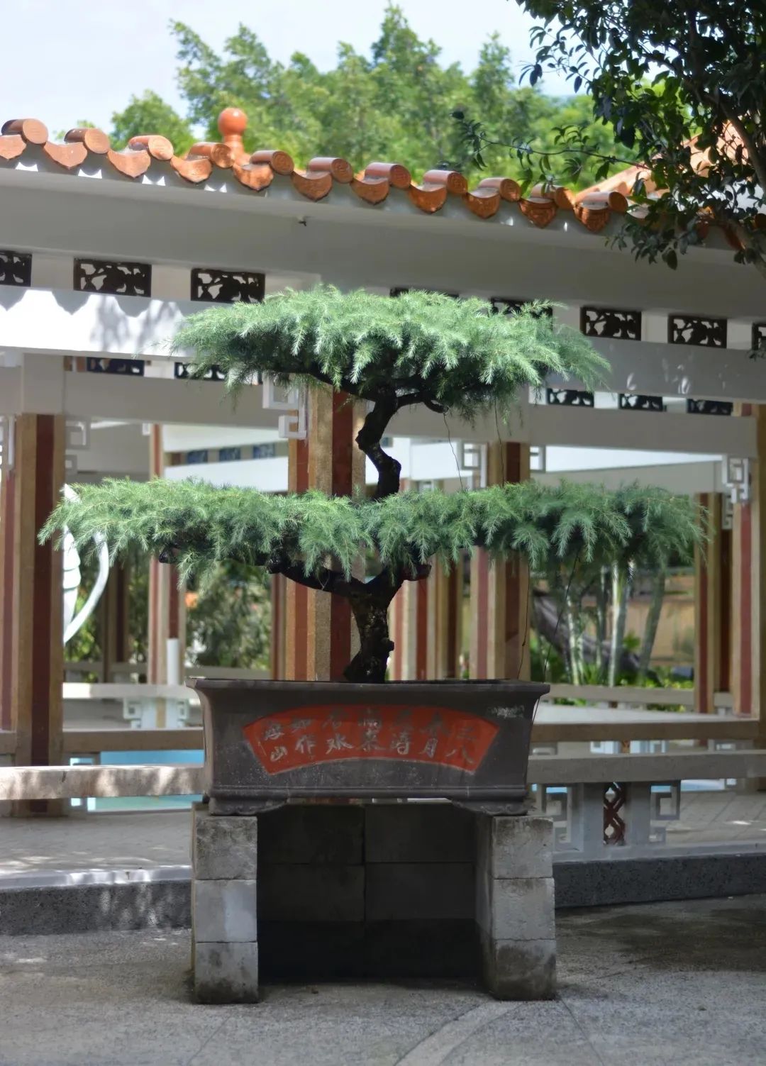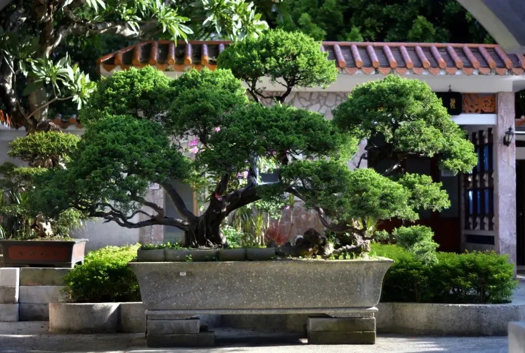 除了选择适合作为盆景,适合花池、花台栽植的种类如福建柏、榔榆、罗汉松、黑松、苏铁外,还从花香、花形、花色、果实、株形的角度选择合适树种,结合主题的植物造景。馆花宫中约有十几个品种盆景180盆,其中6盆在全国盆景展中获得金奖、二等奖、优秀奖等奖项。
