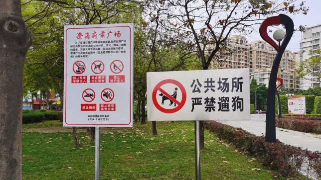 2018年,我市出台实施的《汕头经济特区公园广场条例》明确规定,禁止携带犬类、其他具有攻击性或者恐吓性的宠物进入综合公园、历史名园、纪念性公园、儿童公园和公园广场管理机构禁止进入的其他公园广场。然而,记者夜间在市区各大公园广场看到,还是有个别市民在园区遛狗,其中一些还是大型犬类,像时代广场西侧的这只金毛体型就颇大,它一看到人靠近就大声吼叫。一旁的狗只主人表示,虽然狗只体型大,但有拴绳就问题不大。“别人要来接触它的话,我就跟人说,它比较怕生人,所以能别靠近就别靠近,它还是没什么攻击性的。”