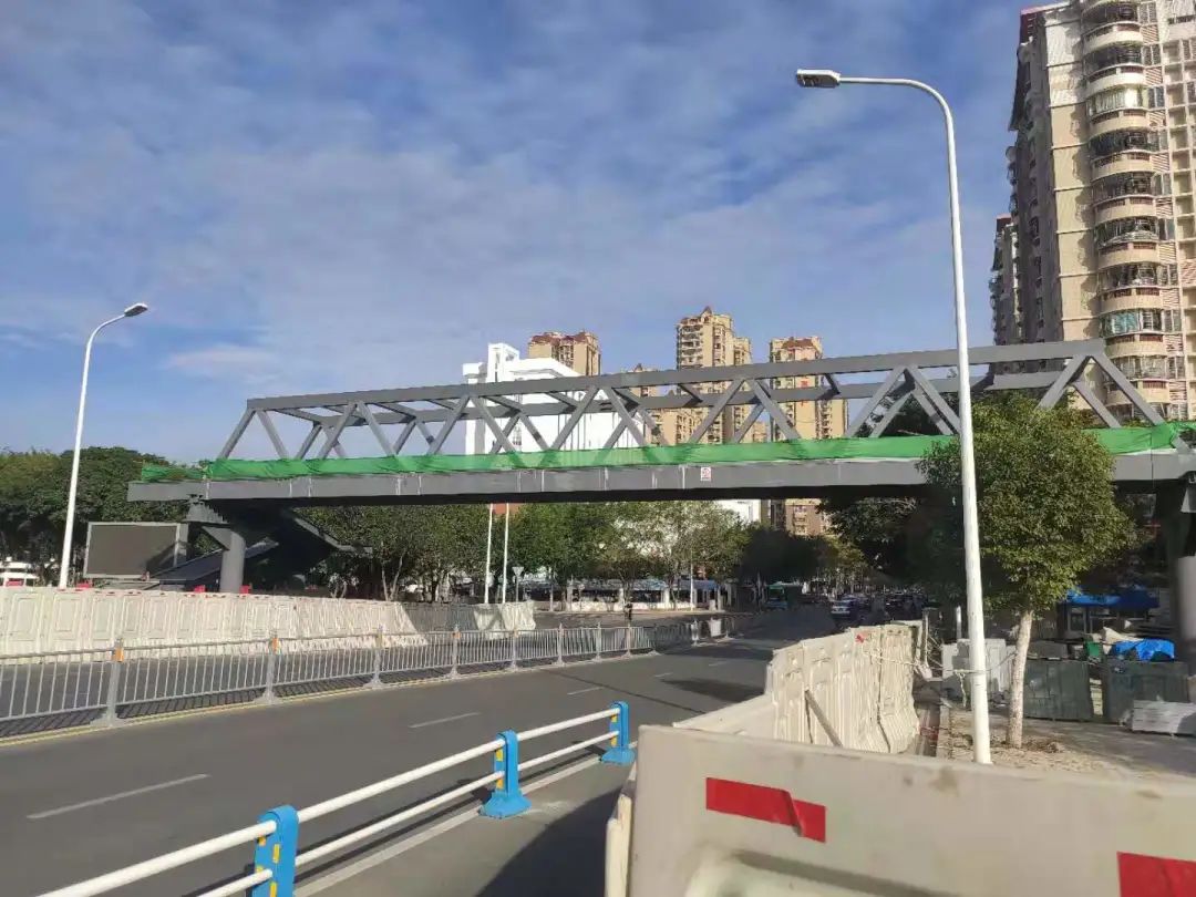 星湖公园(金砂路至中山东路)是东区配套完善、风景优美的带状公园,被称为“家门口的公园”,也是周边居民健身、休闲娱乐的重要场所。然而,由于公园沿途被长平路、韩江路分割,市民群众需绕行长平路和韩江路红绿灯路口才能游览整个园区。为方便市民群众游园,市城管局于近期启动星湖公园跨越长平路和韩江路两座人行天桥的建设。目前,两座人行天桥已分别完成桥体吊装,现正抓紧进行桥面铺装、栏杆安装等工作,计划春节前开放通行,保障市民群众游园安全、舒适。