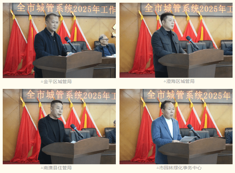 金平区城管局、澄海区城管局、南澳县住管局和市园林绿化事务中心的主要负责同志分别就本单位2025年工作作全面回顾总结,并对2026年工作意见作交流发言。
