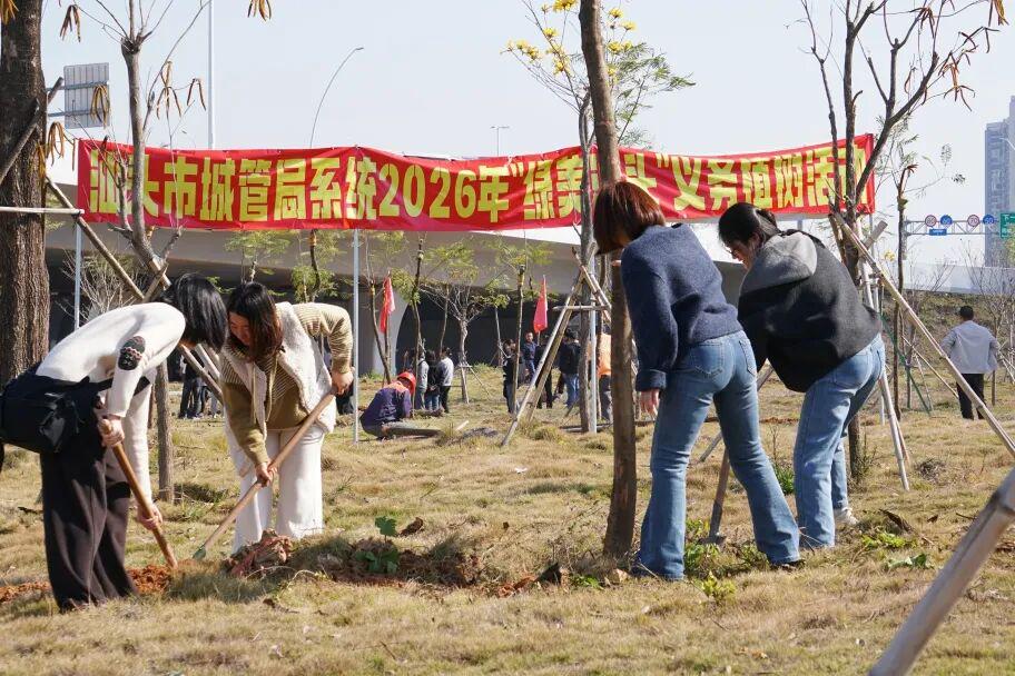植树种绿 播撒生机——市城管部门组织开展2026年义务植树话动