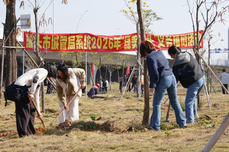 3月12日,市城管局在中阳大道中津大桥附属绿地举办局系统“绿美汕头”2026年义务植树活动。局系统女职工踊跃参与,用实际行动践行绿色发展理念,为汕头增添一抹巾帼新绿,彰显城管女职工在推进绿美汕头生态建设中的良好风采。