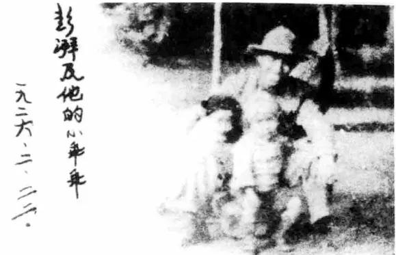 彭士禄幼儿时和父亲彭湃的合影。照片的左侧,彭湃亲笔写下了“彭湃及他的小乖乖,一九二六·二·二二”。照片中左侧的是彭士禄,右侧是彭士禄的哥哥彭绛人。