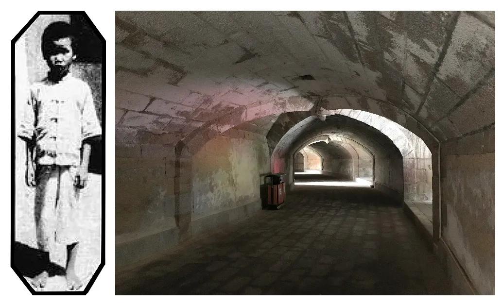 右图:民国时期,国民党统治的年代,本意用来抗击外侮的崎碌炮台,却在1924年改为汕头市惩戒场,沦为血腥的监狱。1933年彭士禄就被囚禁在这里。