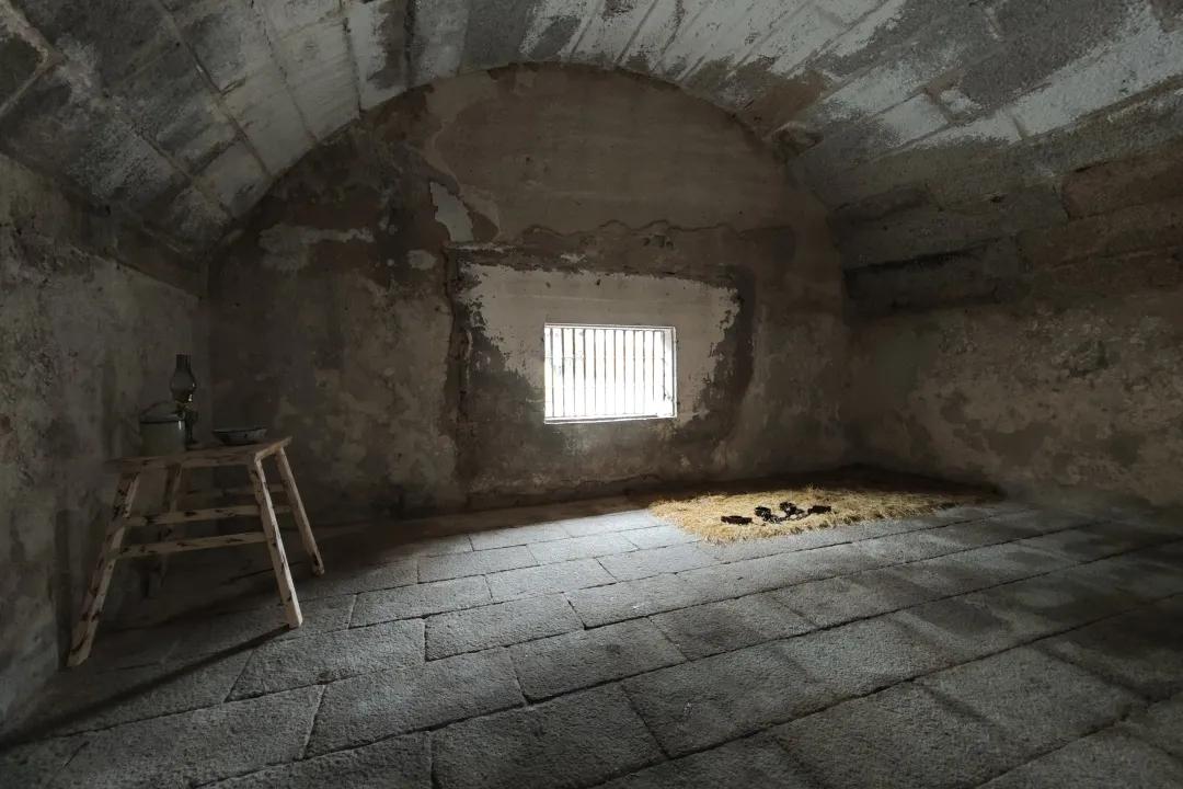 走进石炮台公园的崎碌炮台遗址,一间复原的牢房映入眼帘:地面上除了一席干草、一张破木桌外空空如也,石墙上仅有一道狭窄的铁窗,透进些许微光。这里复原的是崎碌炮台在民国时期沦为监狱时的真实场景,1933年,革命烈士彭湃的儿子——年仅八岁的彭士禄就被囚禁在这里。