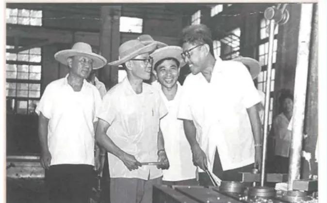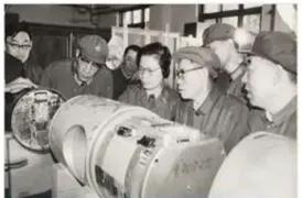 陆上模式堆在摸索建设过程中。由于彭士禄敢拿主意、敢承担责任,人们叫他“彭大胆”“彭拍板”。他说:“所有的数据我都是自己算的,错了,我负责;对了,功劳是大家的!”图为彭士禄在工厂调研。