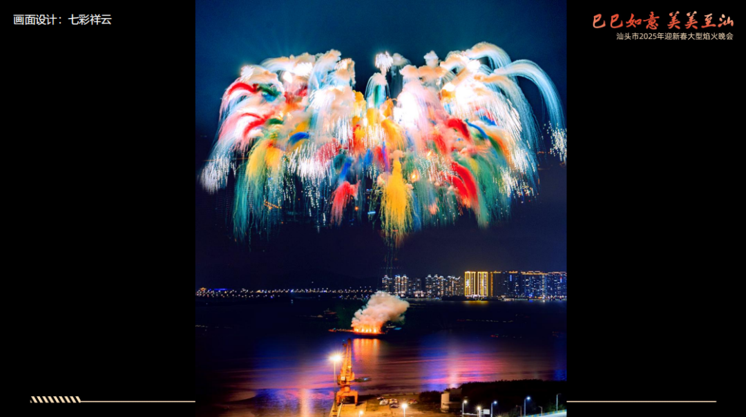 12寸高空特效礼花弹(国内尺寸最大)、超5000架无人机,近10万发的烟花将在2.5公里海面、300米高空进行30分钟表演。