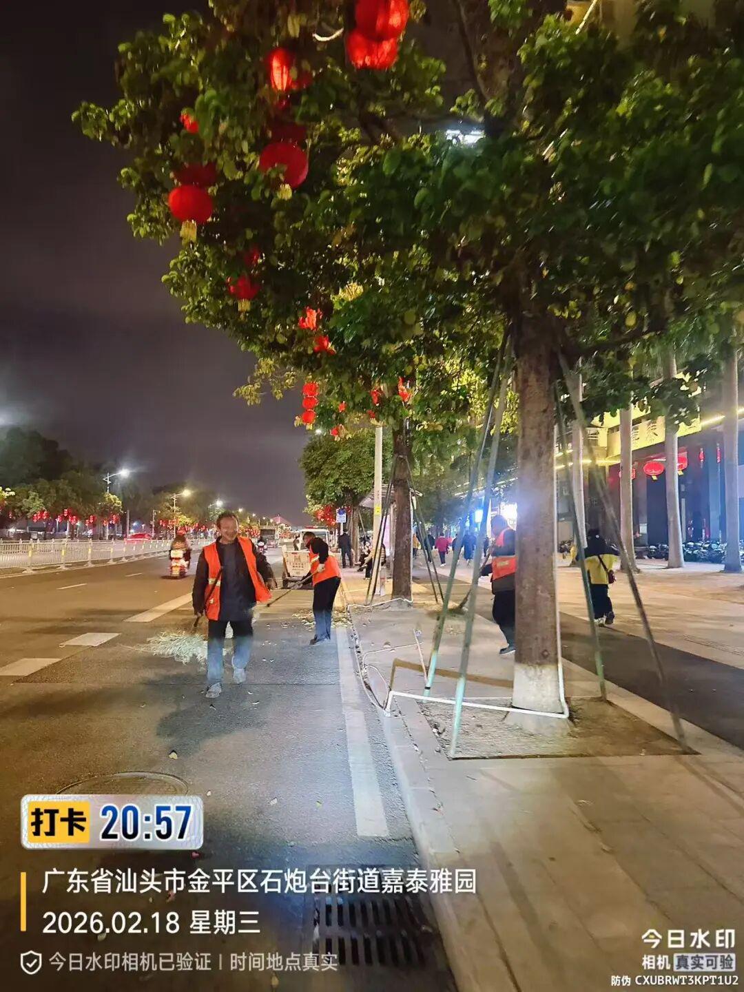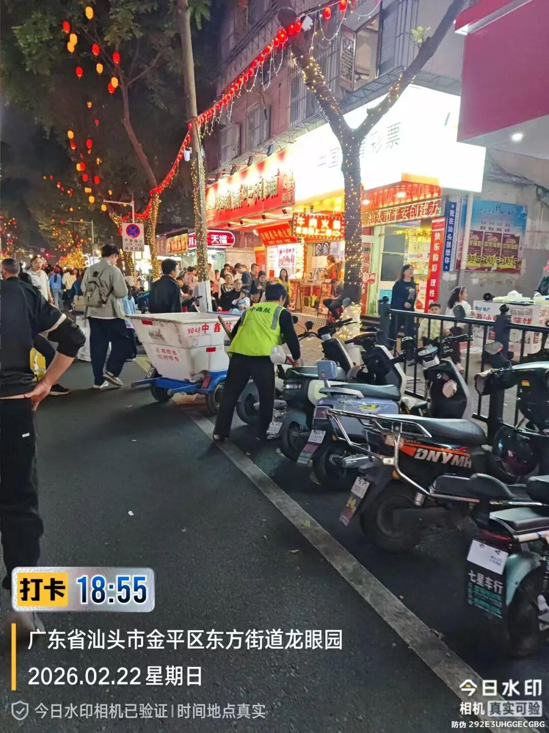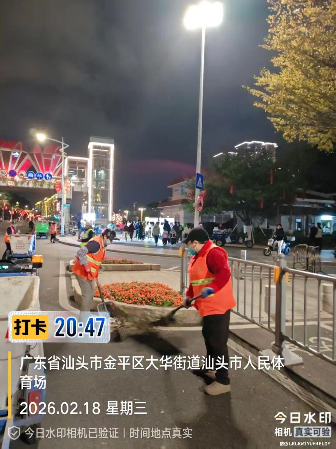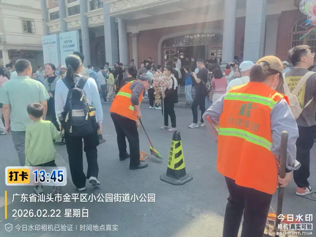 节日氛围热烈浓厚 为守护市民游客 营造整洁有序、舒适安全的环境 汕头城管人坚守岗位 假期服务不打烊 全力做好城市管理工作 用坚守诠释责任,以行动彰显担当 璀璨焰火映鮀城 2月18日晚,“马汕有好事”2026年迎新春大型焰火晚会在汕头内海湾海面盛大上演。为了给市民群众呈现“千簇锦绣垂海湾,万里春光一夜绽”的新春华美景象和送上最真挚的新春祝福,市城管系统各线条的同志们紧锣密鼓,全力以赴投入工作,特别是焰火晚会工作专班听从指挥、积极行动,连续奋战一个多月,以实际行动刷新市民群众的新春幸福感,为晚会办出水平、办出成效做出积极贡献。 为确保此次焰火晚会顺利举办,市城管局从环境卫生、园林绿化、市政设施、执法巡查等方面细化分工,举全系统之力预先投入各项保障工作。为解决往年群众曾有反映的公共厕所数量不足问题,布设移动公厕600台,数量较去年增加了100台,其中主观赏区共设置400台,并在其他观赏区配备相应的公厕。每个公厕点位也相应配置照明电源、大垃圾桶、大白桶、水瓢、免费厕纸等,配备管理人员,满足群众的需求。此外,现场线阵音响设置更加人性化,以保障晚会背景音乐的广播效果。 市园林部门加大市区各大公园、广场、长廊特别是市民群众集中观赏区域公共场所的日常管养力度,提前对人流密集和燃放场地周边的树木进行修剪,共修剪5645株,完成约72.4万㎡绿地的保洁工作,并落实专人加强各大公园广场的管理和巡查。市政部门为确保安全,及时封闭观赏区域范围内人行天桥,做好封控管制区内步道、隔离栏等安全隐患排除工作,确保观赏期间有序、安全。市城照部门提前对中心城区的灯光灯饰进行巡检,消除安全隐患,并积极配合供电部门做好应急照明工作。市城管局还组织了专门的巡查队伍,由局分管领导带队,带领城管执法队伍全天候开展定点巡查,共出动人员近90人次、车辆22台次。 为保障市民在焰火晚会期间出行安全有序,市城管局提前落实共享单车运营商制订焰火晚会共享单车管控方案,安排400名工作人员巡守主要道路和各主要路口共享单车停车点,严密监控实时共享单车区域数量饱和度,及时调整管控区域,对乱停放车辆立即转运及规整,并在晚会期间做到管控到位,最大程度舒缓主观赏区交通压力,晚会期间和结束后各运营商共清运及规整摆放共享单车2.68万辆。 晚会期间,市数字城管指挥中心加强路面巡查和视频巡查,并跟进观赏区域范围内人流车流情况,及时将有关情况通报相关部门掌握处置。 在焰火晚会结束后,为迅速恢复市容市貌,市城管系统各线条第一时间马不停蹄投入市容市貌恢复工作,特别是环卫部门立即开展环卫保洁,打捞海面漂浮垃圾,确保能在第一时间恢复市容环境卫生干净整洁,精心精致守护城市“容颜”。 扮靓城区庆新年 营造浓烈节日氛围。截至2月23日,中心城区各公园、广场共接待游客合计约105.7万人次。为给市民游客营造浓厚的节日氛围,市城管部门在市区各公园、广场、绿地在园区出入口、等重要点位以及市区海滨路、泰山路、金环南路、金砂路等重点路段摆设时花,在园区广场、园路两侧等显眼位置设置了国旗、灯笼串、打卡点灯光装饰,营造欢乐喜庆的节日氛围。 提供便民利民服务。春节期间,各公园(广场)持续做好园区及道路主干道绿植的日常管养及春节摆放时花的管养工作。并针对人流情况增派人手,及时清理园区动态垃圾,对园区公共设施、垃圾桶、公厕等游客常用区域加强清洗打扫,维持好公园秩序,确保园区整体稳定有序。 维护市政设施运行。市市政工程维修中心对市区主要干道、步道、管辖桥梁及四沟设施等加强巡查,发现问题立即修复,保证市区道路通行状况良好,保障市民安全出行。 监控巡查落实整改。市数字城管指挥中心利用线上线下巡查机制,加强视频监控巡查,及时将发现的问题落实各责任单位进行整改,保障城市环境整洁有序。 洁净守护暖新 加强中心城区环卫保洁。为给市民群众营造一个干净整洁的市容环境,中心城区各级环卫部门重点加强各重点路段、公共区域、景区景点、车站码头以及各活动场地周边路段的清扫保洁工作,适当增加巡回保洁班次。据统计,春节期间,中心城区累计出动环卫作业人员约3万余人次,各类作业车辆机械约2万余车次,收集转运生活垃圾约2.1万吨。 适时安排道路冲洒作业。市环卫直属车队针对春节期间人流车流剧增的情况,合理调整作业安排,采用高空抑尘和高压冲洒水结合的模式,加强中心城区北岸重点路段作业,同时按照焰火晚会保障工作任务要求,在晚会后对中山路等重点路段进行高空抑尘作业。 持续打捞清理内海湾垃圾。市渣土所出动大小保洁船只和人员对海面和岸基浅滩垃圾进行持续打捞和捡拾,全力确保节日期间特别是焰火晚会前后海域洁净。春节期间,共出动大小保洁船只42船次,作业人员292人次对海面和岸基浅滩垃圾进行持续打捞和捡拾,共打捞清理内海湾漂浮垃圾47.2吨。 市容有序迎新春 有序开展共享单车管理。市城管局春节假期持续加强共享单车管理。对小公园等热门景点核心区设置共享单车禁停范围,并在周边区域新增假期临时停放点,设置假期临时电子围栏,增加热门景点、商业综合体、交通枢纽等重点区域的巡查、调运频次,落实重点区域共享单车“夜间清零”