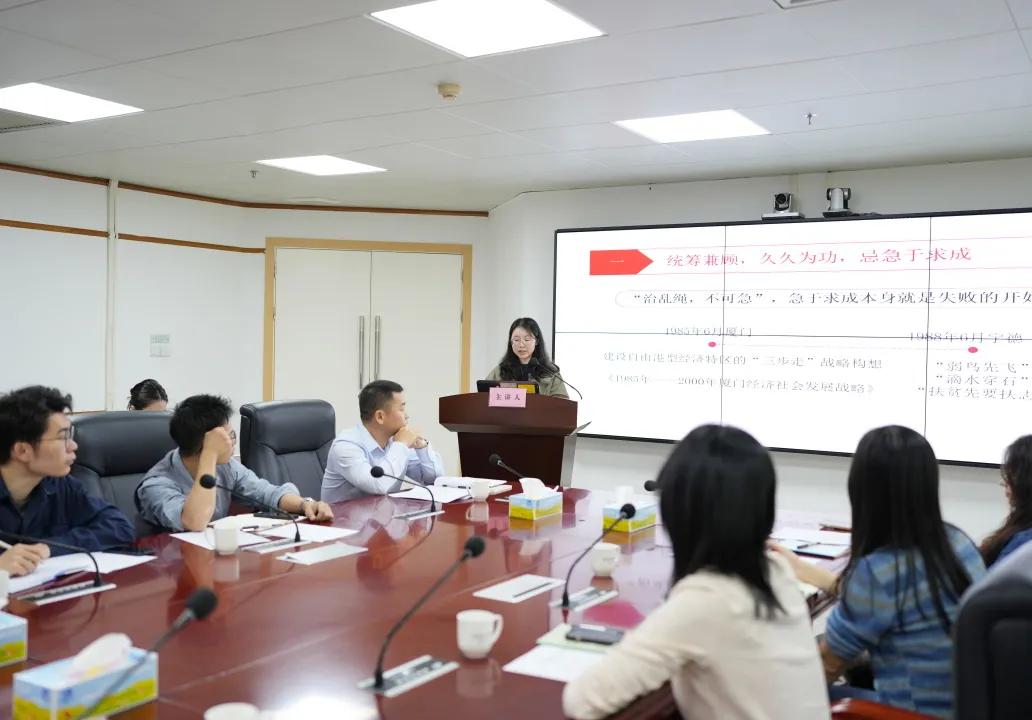 赖丹琪同志以《学深细悟“四忌”,树立正确政绩观》为题,紧扣习近平总书记《从政杂谈》中对青年干部的要求,结合习近平总书记在厦门、福州的工作实践,从“忌急于求成、忌自以为是、忌朝令夕改、忌眼高手低”四个维度,分享了对青年干部如何树立正确政绩观的理解。