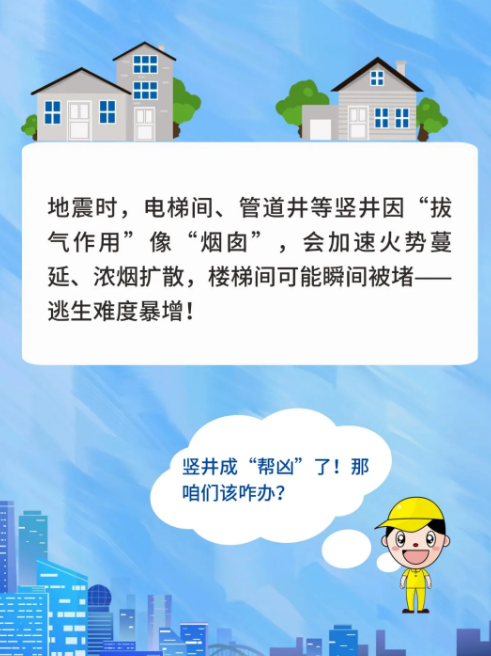 高层楼房遇地震后易引发火灾,竖井“烟囱效应”、逃生通道堵塞等问题,让双重危机更棘手!掌握关键技巧,关键时刻能救命。
