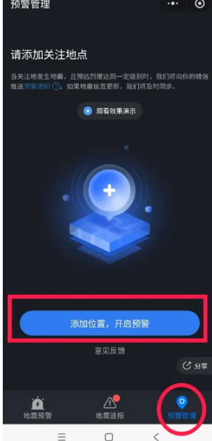 第三步:进入预警管理页面,成功“添加位置,开启预警”