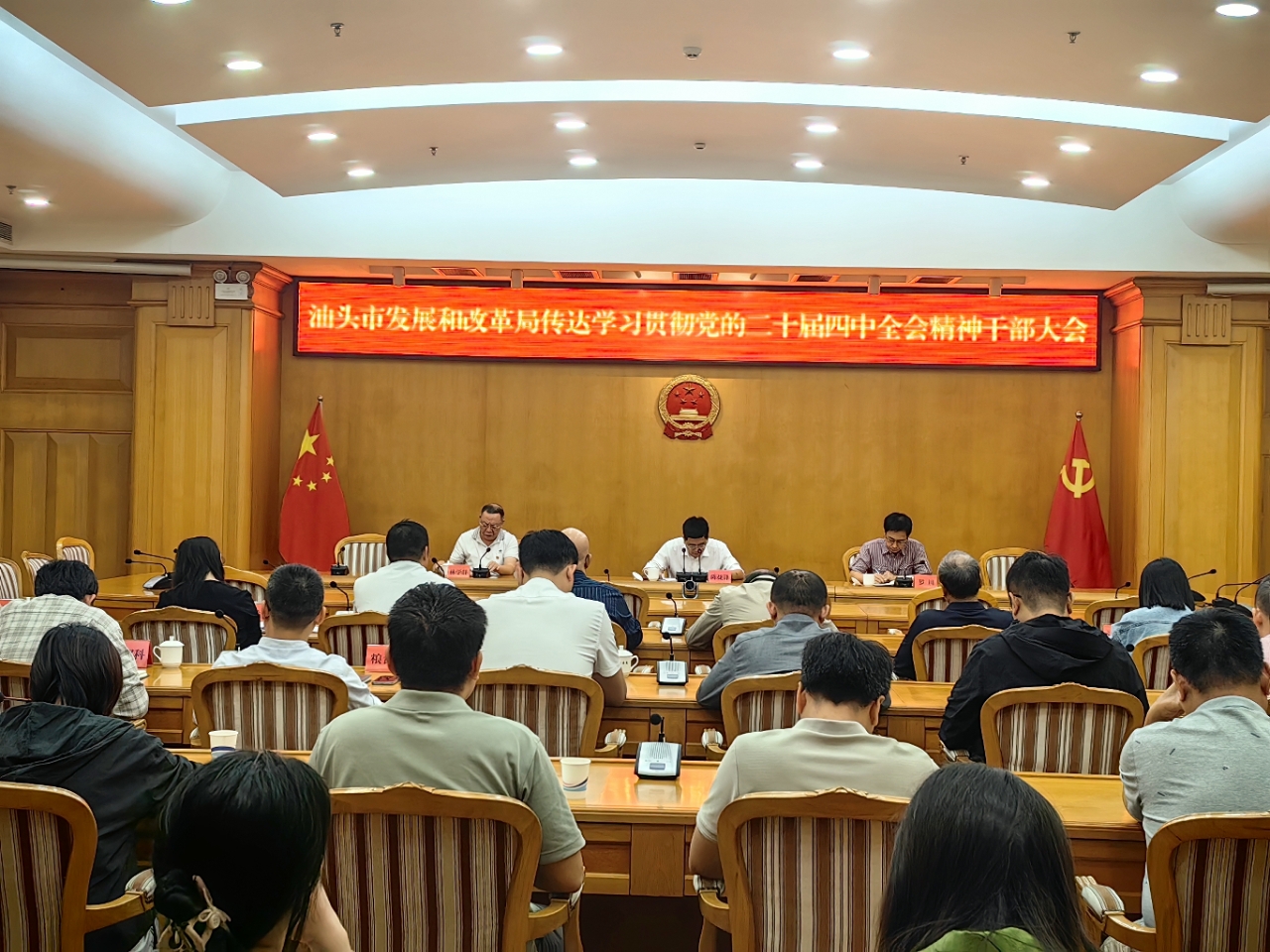 2025年11月3日,中共汕头市发展和改革局党组召开全局干部大会,深入学习贯彻习近平总书记在党的二十届四中全会上的重要讲话和全会精神,认真学习全省、全市传达学习贯彻党的二十届四中全会精神干部大会精神。局党组书记、局长陈捷锋主持会议并讲话。