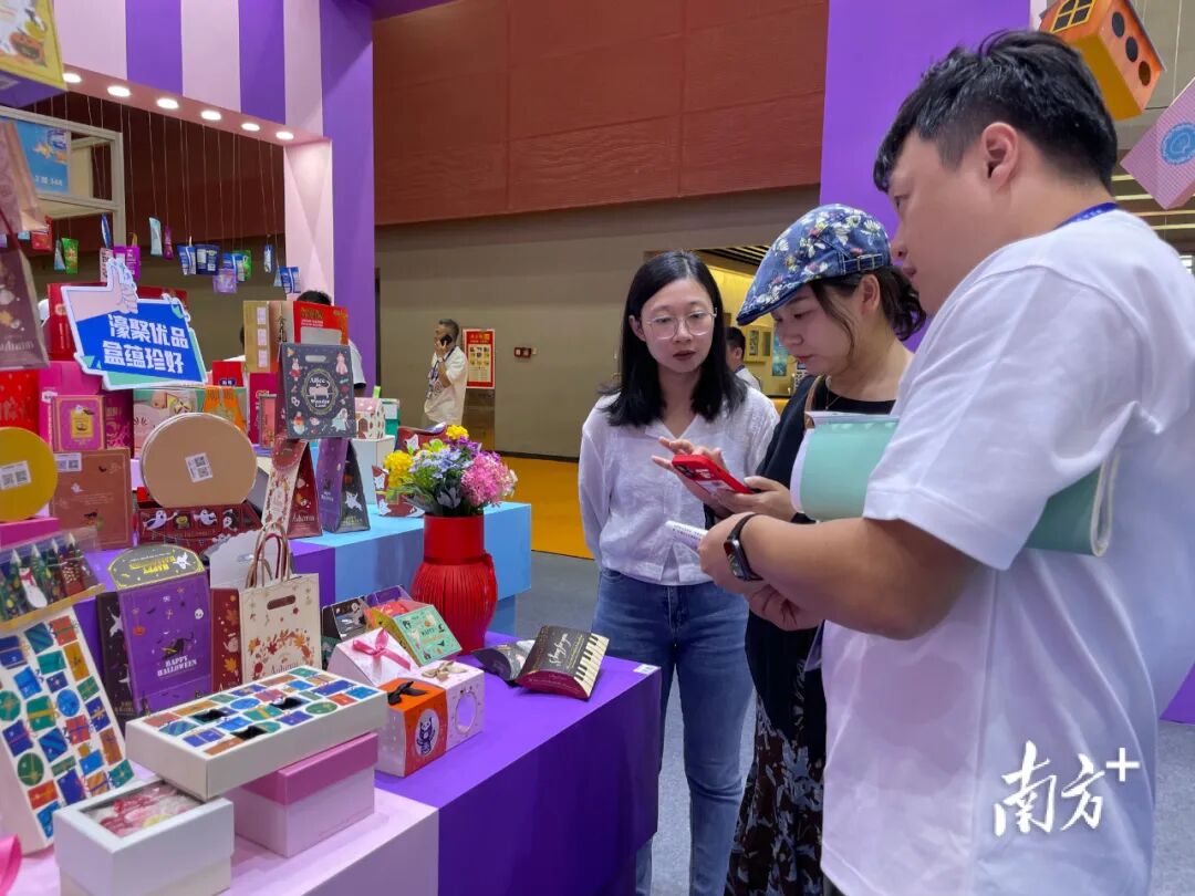 展会现场,许多客商被精美的陈设吸引而来。经过主理人们的介绍,他们纷纷一口气添加了各位企业负责人的联系方式。“有的企业专做内包装,有的擅长外包装,有的是食品礼盒定制,有的是办公礼盒设计,大家都各具特色,分工明确。”来自江门的客商陈女士说道。