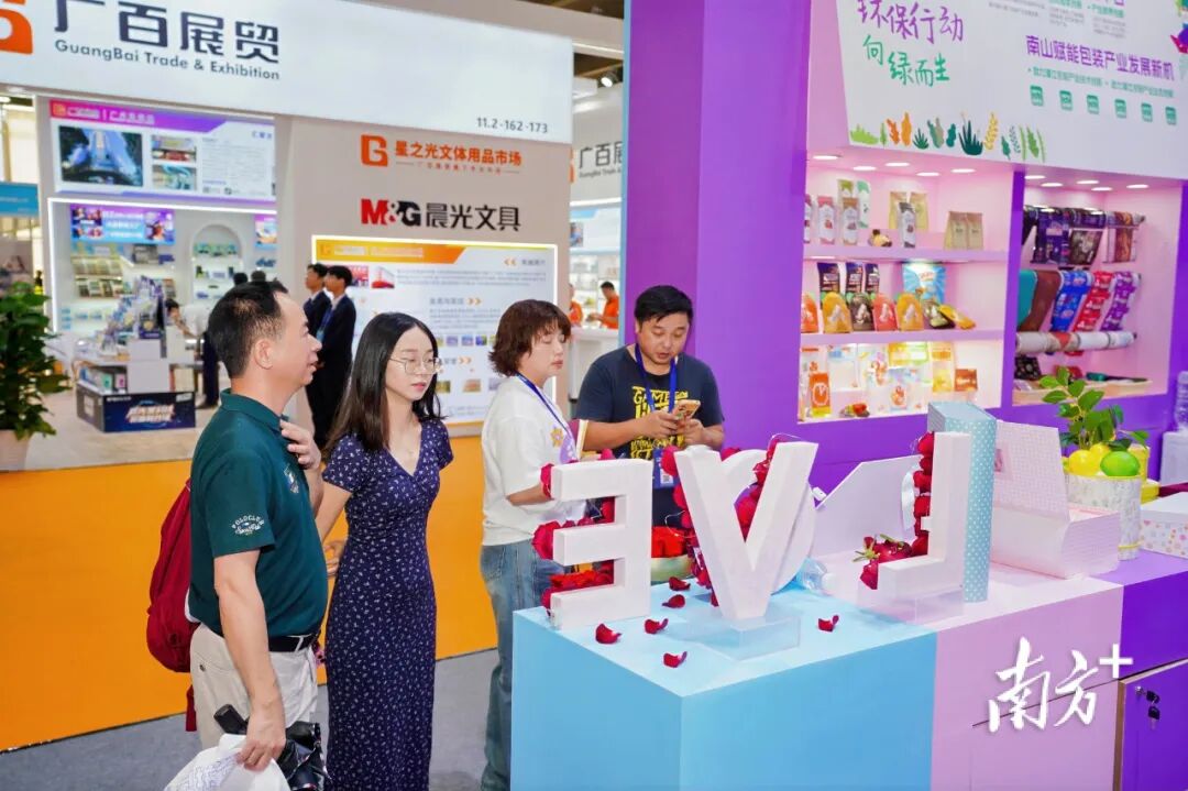 值得一提的是,此次展位充分链接了深圳南山的湾区资源与创意设计。在南山设计团队的精心加持下,许多包装企业的产品更加出众。记者了解到,自深圳南山区驻濠江区工作队进驻濠江以来,便以“湾区市场+濠江供给”的创新模式,助力濠江搭建本地贸易平台。在内贸领域,深圳南山与汕头濠江携手共同孵化“濠江珍好”区域公共品牌,并于今年与林丹体育共同孵化DAN LIFE运动生活方式品牌;在外贸方面,引入象屿产发集团在濠江建设运营跨贸服务平台、跨境电商产业园。通过内外贸“两条腿走路”的策略,共同为当地产业赋能。