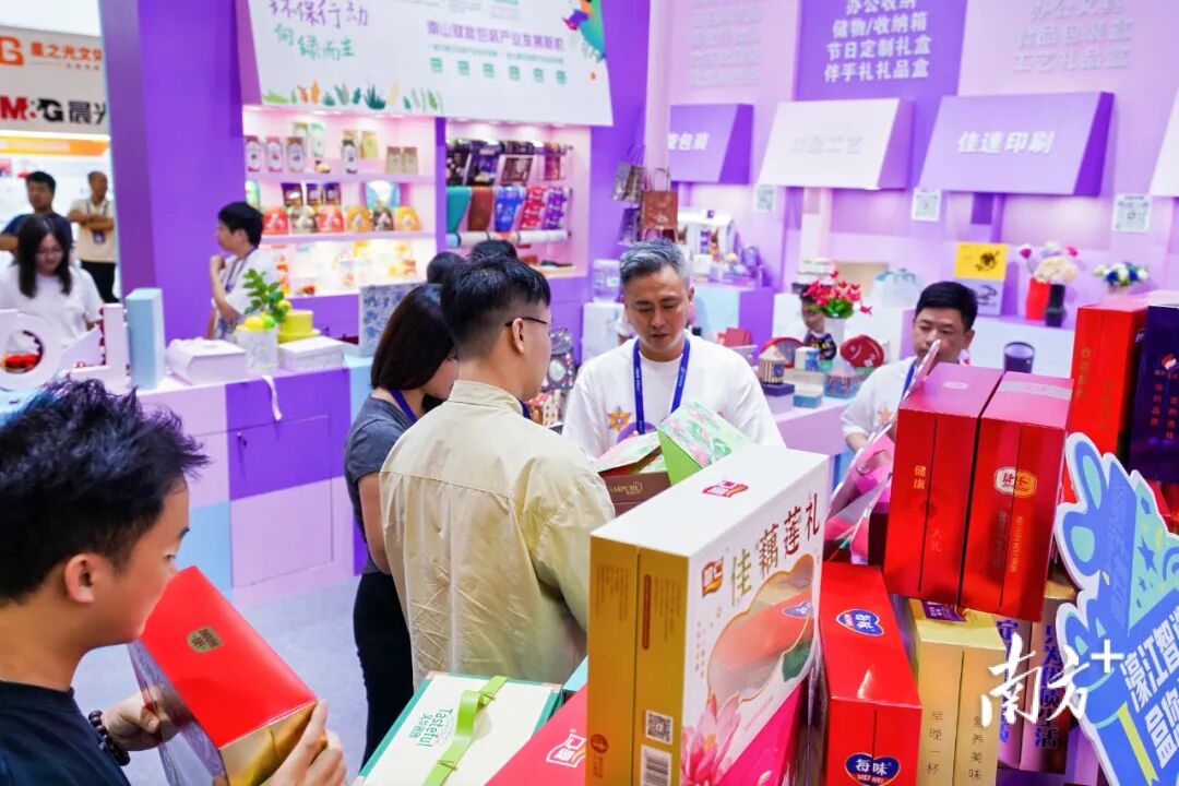 “这是我们濠江的包装产业,欢迎参观!”每当有客商踏入展位,“濠江盒子”中多位来自包装企业的“企二代”主理人便秒变热情的“店小二”,主动上前迎宾。记者留意到,他们在详尽介绍完自家产品后,会贴心地引导客商前往下一家企业的产品展示区,像传递交接棒一样,将介绍任务交给下一位主理人。如此一来,客商只需在“濠江盒子”展位逛上一圈,便能大致了解濠江包装产业的特色以及跨界创新的亮点所在。