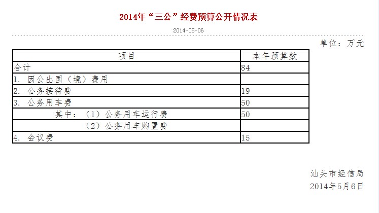 2014年“三公”经费预算公开情况表