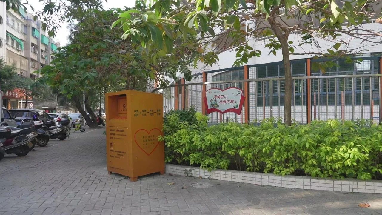 在金砂街道金丰社区,这个浅橘红色的“慈善公益回收箱”格外显眼,箱子主要用于回收旧衣服、鞋子、包、床品等。记者在现场看到,不时有市民前往投放旧衣物。