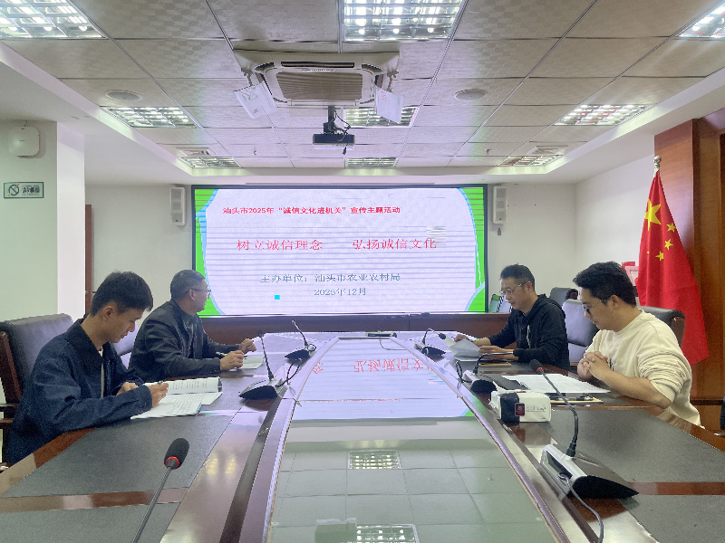 为贯彻落实《2025年汕头市社会信用体系建设工作要点》,以建设“诚信机关”为目标,将树立诚信理念、弘扬诚信文化融入农业农村工作,进一步提升农业农村部门政务服务质效和政策执行的公信力。12月17日,市农业农村局组织开展“诚信文化进机关”宣传主题活动。