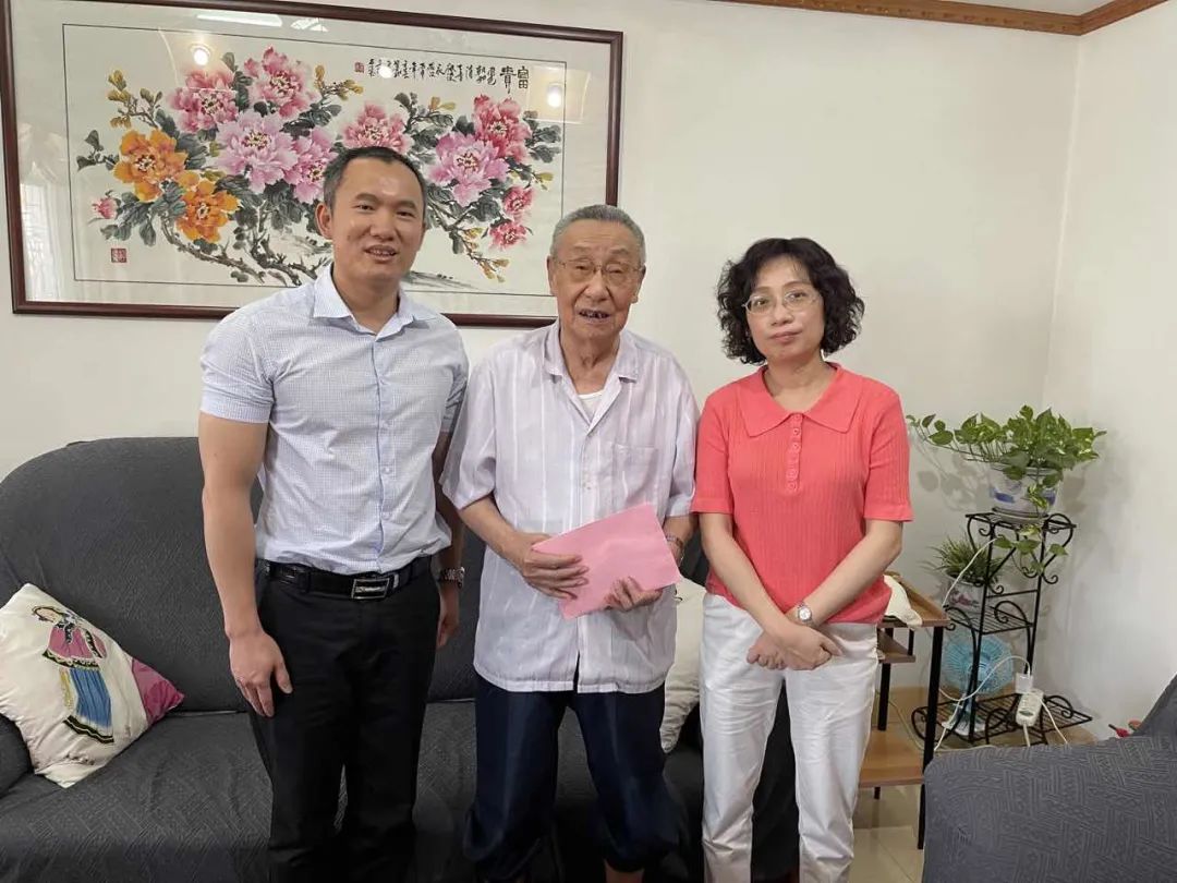在“七一”建党节到来之际,为激励引导广大党员干部向老党员学习、向老同志致敬,市人社局党组成员、副局长陈纯等局领导分别带队走访慰问老党员,送去党组织的关怀和温暖,并向在党50年的老党员颁发纪念章。
