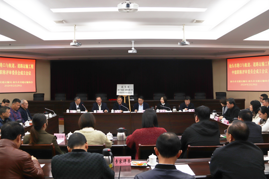 2月29日,汕头市港口与航道、道路运输工程中级职称评审委员会成立会议召开,市人力资源和社会保障局副局长洪木佳、市交通运输局党副局长杨卫、市交通运输协会会长周壬旭参加会议。