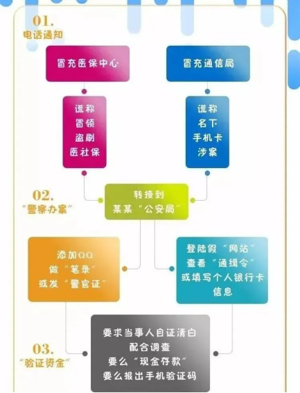 冒充“公检法”诈骗的最后一步,骗子会要求被害人将银行卡的资金转到指定的“安全账户”,或要求被害人将所有资金汇集到一张银行卡,然后骗子通过骗取被害人该张银行卡的密码、手机验证码、网银等信息将该张银行卡的资金转走。