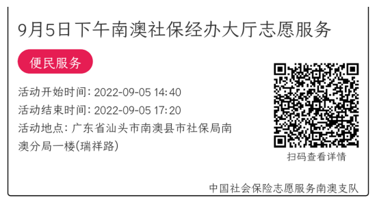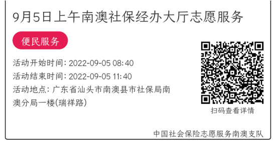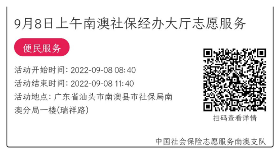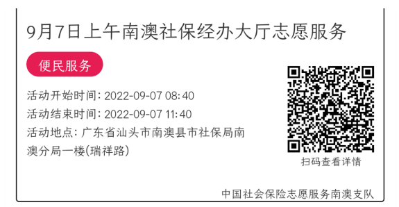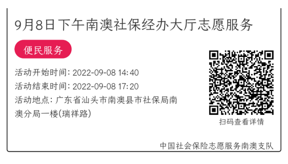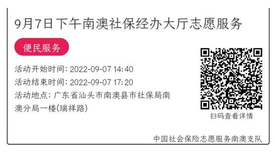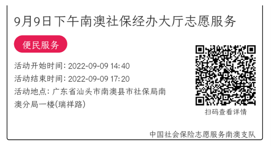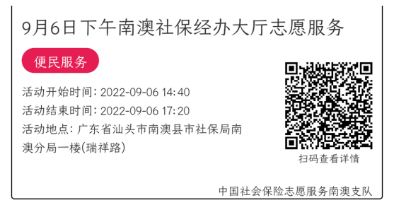 022年9月5日至9月9日市社保局南澳分局大厅志愿服务活动,需要每一个可爱的你参与!
