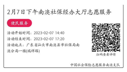 2023年2月6日至2月10日市社保局南澳分局大厅志愿服务活动,需要每一个可爱的你参与!