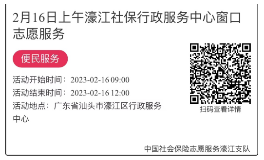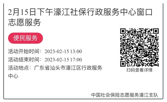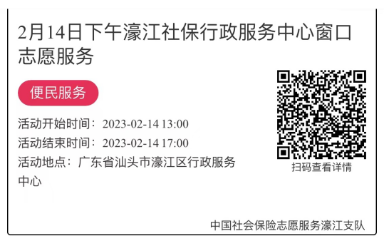 2023年2月13日至2月17日市社保局濠江分局驻行政服务中心窗口志愿服务活动,需要每一个可爱的你参与!