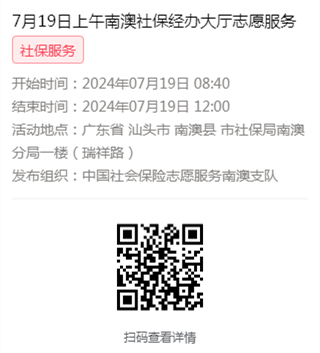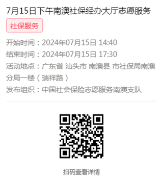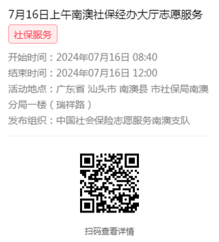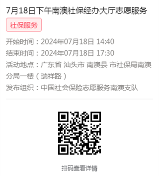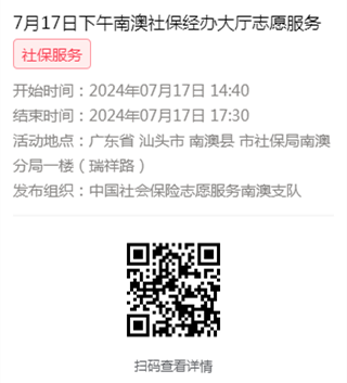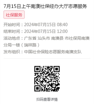 2024年7月15日至7月19日市社保局南澳分局大厅志愿服务活动,需要每一个可爱的你参与!