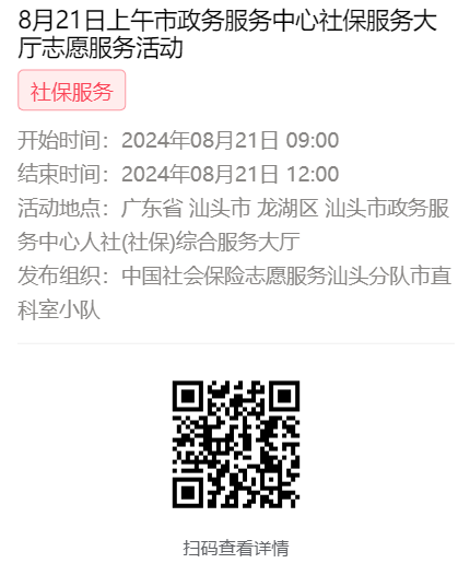 2024年8月19日至8月23日市政务服务中心志愿服务活动,需要每一个可爱的你参与!