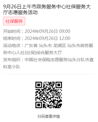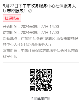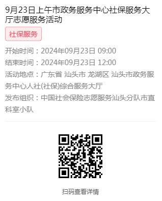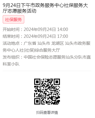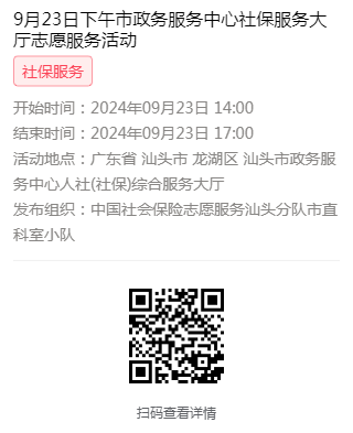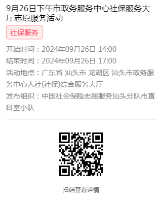 为充分保障我市社保志愿者权益,自2022年10月18日起,报名参加汕头市社保局和各分局志愿活动的同志须持有志愿者证并已激活,请各位志愿者遵照执行。