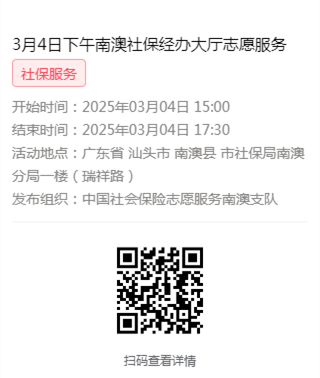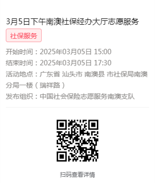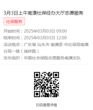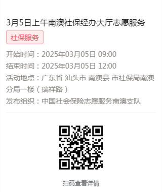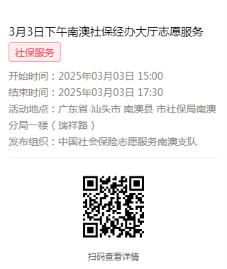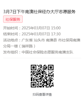 2025年3月3日至3月7日市社保局南澳分局大厅志愿服务活动,需要每一个可爱的你参与!