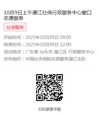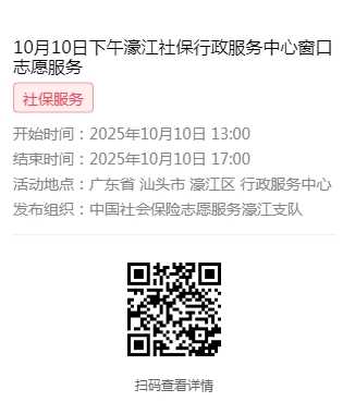 2025年10月9日至2025年10月11日市社保局濠江分局驻行政服务中心窗口志愿服务活动,需要每一个可爱的你参与!